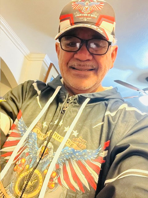 My hoodie is great. I am totally satisfied with the quality of all of your products I have purchased and received. Per your request I am enclosing several photos of my hoodie on. If you like any of them you may post one or more of them on your website. I enjoy doing business with your company